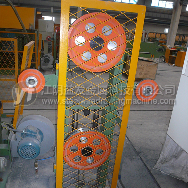 張力架是協(xié)調(diào)平衡拉絲機與收線機之間的速度的中間機構,是拉絲機實現(xiàn)整條生產(chǎn)線自動化高速生產(chǎn)的必要設備,而且還可以通過調(diào)整氣壓來調(diào)節(jié)拉絲機與收線機之間的鋼絲張力,確保鋼絲在象鼻式收線機上線性穩(wěn)定,使收線機能夠持續(xù)不斷的保持用戶所需要的圈徑與平整度。張力輪直徑Φ320mm,采用鋁合金表面噴涂陶瓷,既耐用又輕便。